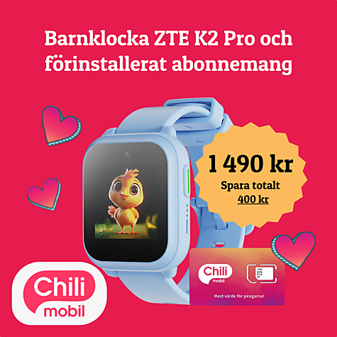 Vårt populära paket med barnklocka och abonnemang förinstallerat som gör att du enkelt kommer igång! ZTE Barnklocka K2 Pro med Chilimobil abonnemang! Abonnemanget kostar 99 kr i månaden och faktureras separat måndadsvis. Läs mer här om abonnemanget: https://chilimobil.se/barnklocka/