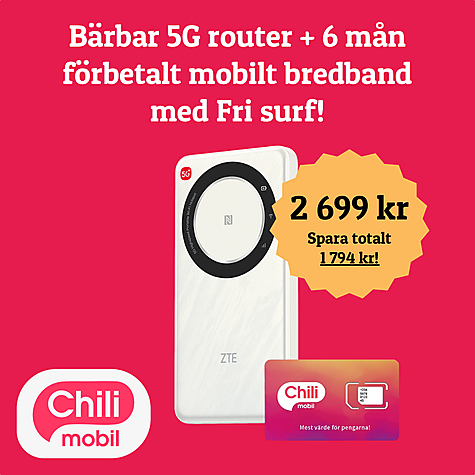 Spara totalt 1 794 kr under decemberkampanjen vid köp av en bärbar 5G router med 6 månaders förbetalt mobilt bredbandsabonnemang. Fri Surf och Full fart ingår!